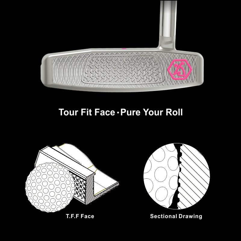 ツアー フィット フェースは、ゴルフ ボールのさまざまなディンプルと一貫した接触を生み出し、摩擦を生み出してインパクト時にゴルフ ボールを捉え、より前方に転がるように設計されています。また、パッティングの感触と距離のコントロールのためにプレーヤーに聴覚フィードバックを提供するように設計されています。