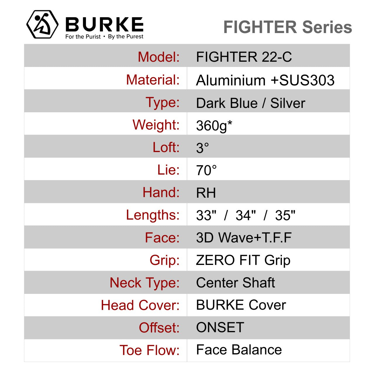 With the BURKE Target Lock Alignment system,the FIGHTR can help you align the face of the putter with the target while clearly visualizing the rolling path from the hole to the ball.
