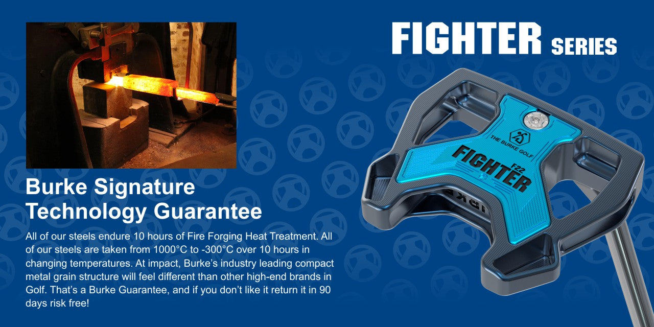 With the BURKE Target Lock Alignment system,the FIGHTR can help you align the face of the putter with the target while clearly visualizing the rolling path from the hole to the ball.