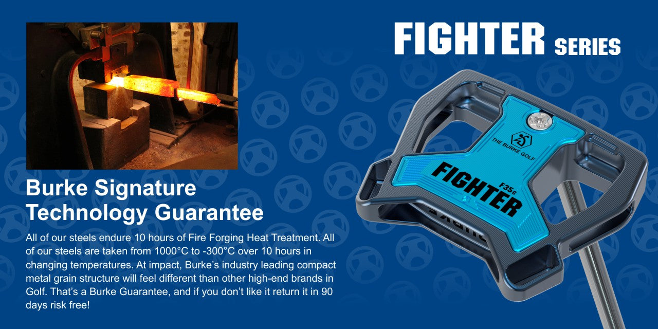 With the BURKE Target Lock Alignment system,the FIGHTR Putter can help you align the face of the putter with the target while clearly visualizing the rolling path from the hole to the ball.