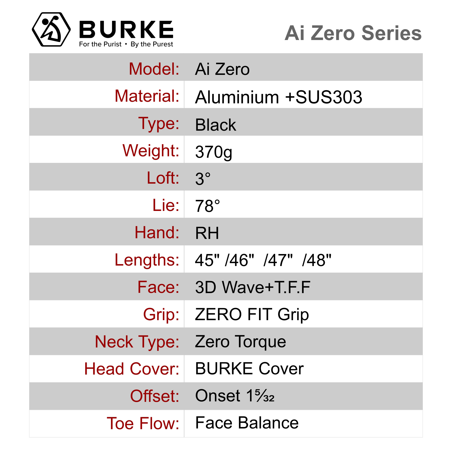 Accurate hole putting begins with perfect target alignment. Utilizing the unique Burke Target Lock Alignment system, the Ai Zero putter enhances visual perception and widens the visible target alignment path. This helps you clearly see the rolling path from the ball to the hole while aligning the striking face with the target.