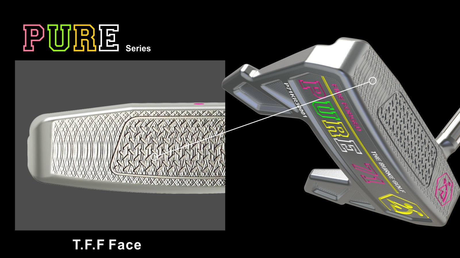 Innovative Rear-Weighted Center of Gravity––The Pure 71 putter features a groundbreaking center of gravity design,concentrating the weight at the rear edge to optimize stability during impact.