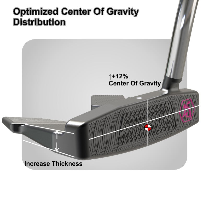 The putter features thicker wings on the main body,which raises the center of gravity and increases the moment of inertia(MOI)for more consistent ball roll.This design also enhances the feedback sensation during impact,improves the ball's roll performance on the ground,and adds a more stable and substantial appearance.
